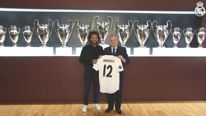 Real Madrid signed Marcelo on November 15, 2006, and the player was presented with a special shirt by president Florentino Perez this Friday.