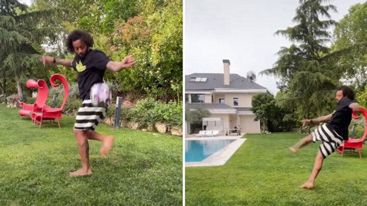 The season is over for Real Madrid, but Marcelo is keeping fit in his back garden.