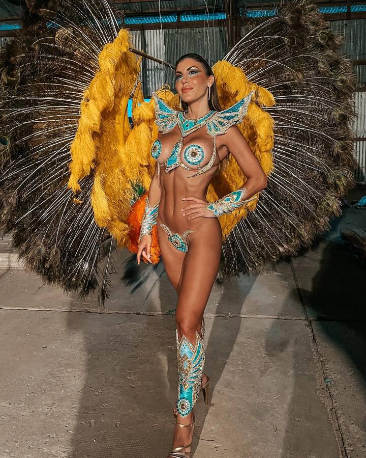 LISANDRO MARTINEZ'S girlfriend Muri Lopez left very little to the imagination as she sparkled in a carnival outfit.