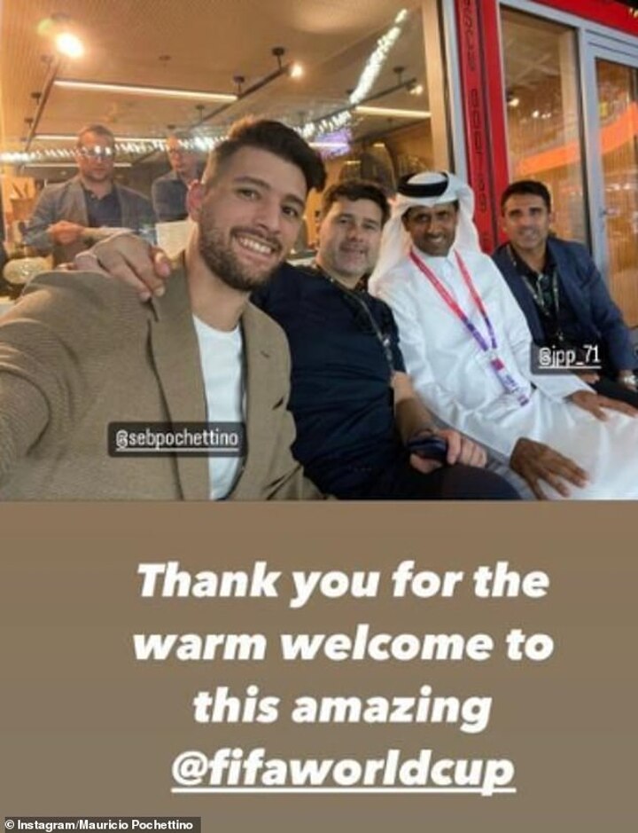 In Qatar with son Sebastiano and his coaching assistant Jesus Perez, Pochettino even watched the Japan vs Spain match alongside FIFA president Gianni Infantino and showed there were no hard feelings against PSG by watching another with president Nasser Al-Khelaifi.