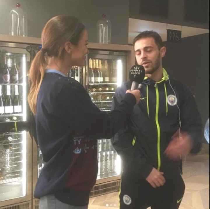 Brunette Natalie, 36, gets up close and personal with stars such as Riyad Mahrez and Bernardo Silva as part of her job at the Etihad.