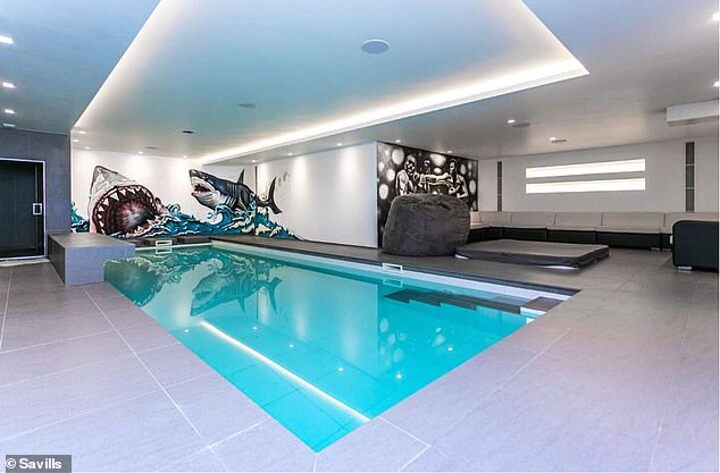 The 'amazing 11,000sq-ft residence' is set in over 1.75 acres of grounds and boasts six bedroom suites, an open plan living area, games room, home cinema, swimming pool, steam room, gym and spa.