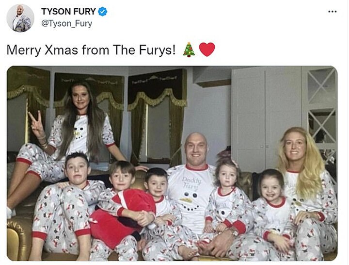 Outside of football, boxing heavyweight Tyson Fury posted on Twitter with a shot of his family who were all wearing matching pyjamas and said: 'Merry Xmas from The Furys!'