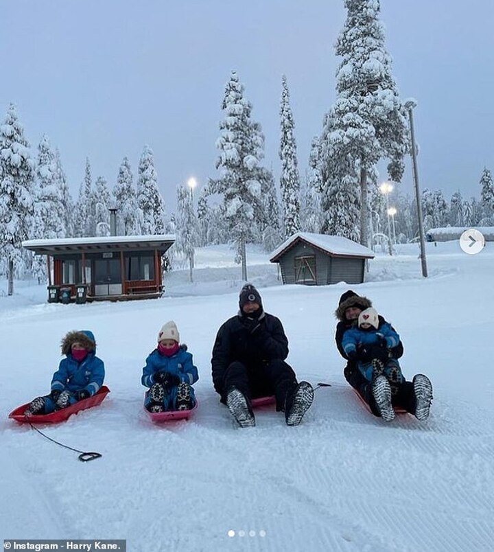 Meanwhile, England skipper Harry Kane added a photo of himself with his wife and three children in the snow - as they all sat on a sled.
