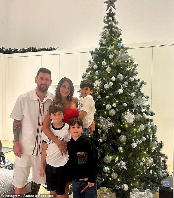 World Cup winner Lionel Messi's wife shared a photo of the Messi family and wished everyone 'Merry Christmas' as they posed by their Christmas tree back home in Argentina.