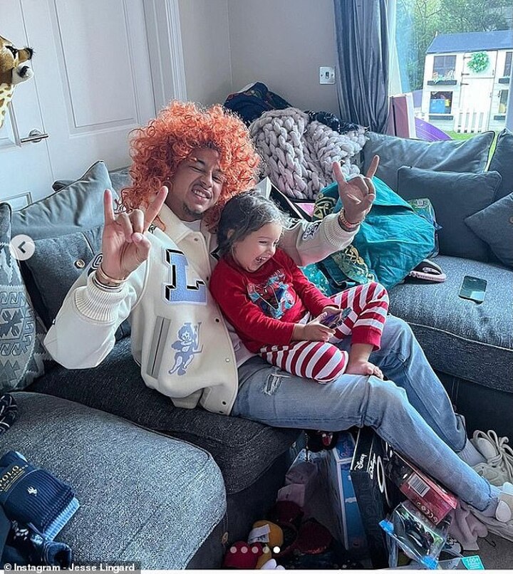Jesse Lingard also shared a snap of him sporting a rather extravagant ginger wig, with his daughter sitting on his lap, as the Nottingham Forest star shared a series of photos of them together.
