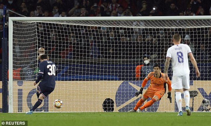 Lionel Messi blew a golden opportunity to open the scoring for PSG against Real Madrid but his penalty kick was saved by goalkeeper Thibaut Courtois.