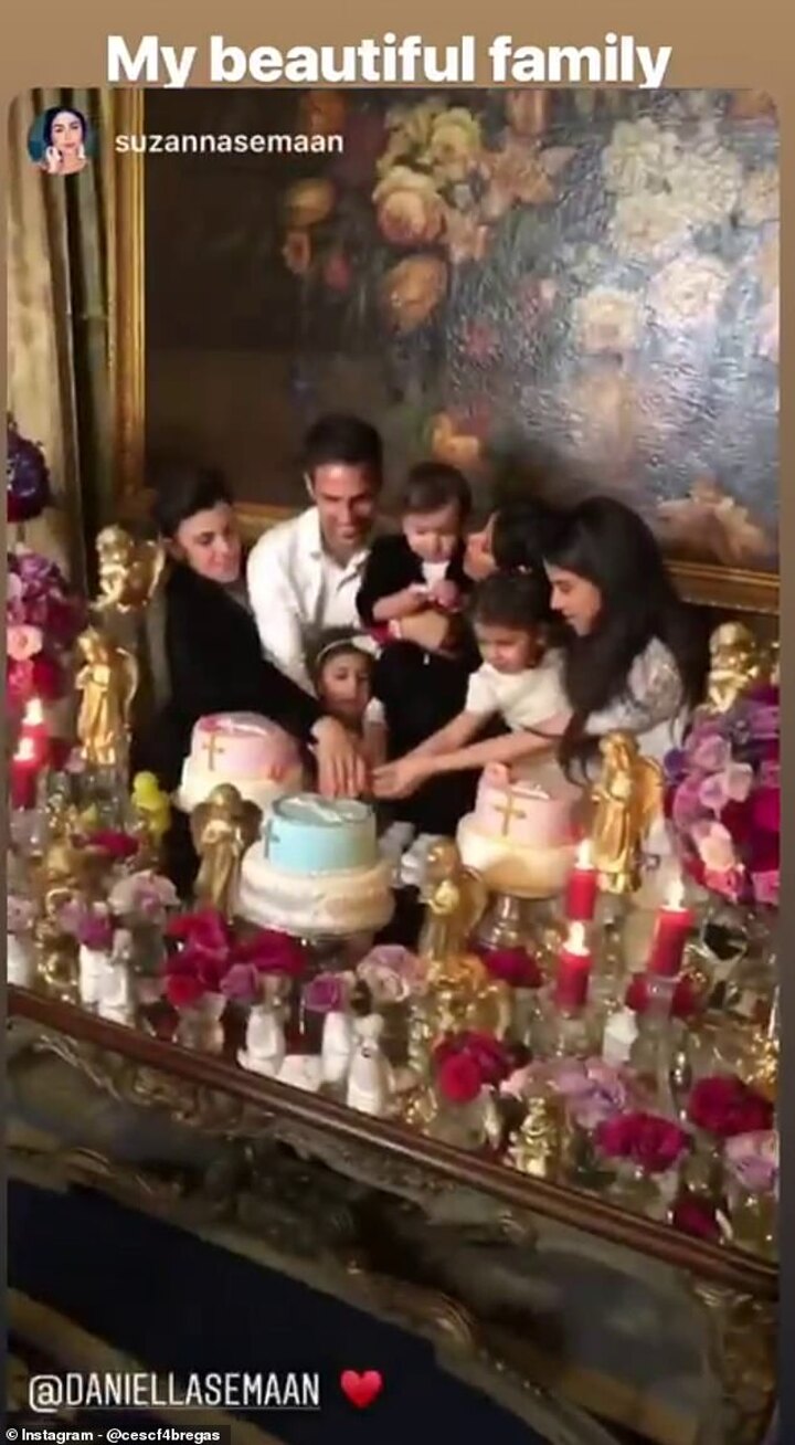 Fabregas' son, one-year-old Leonardo, was baptised, while the Monaco midfielder's daughters Lia (five) and Capri (three) were also present.