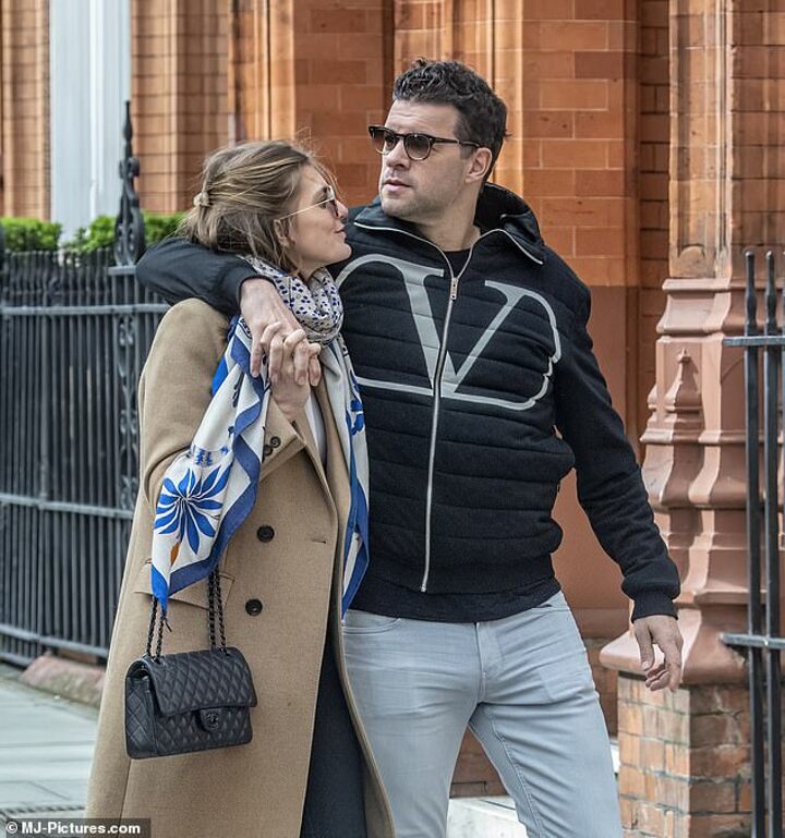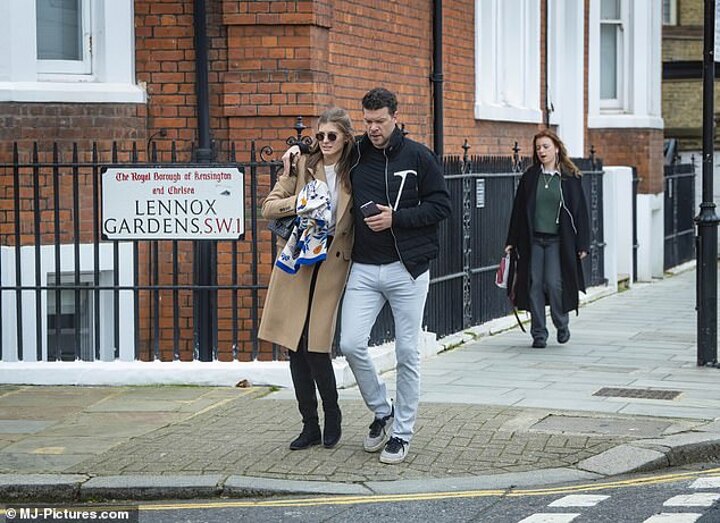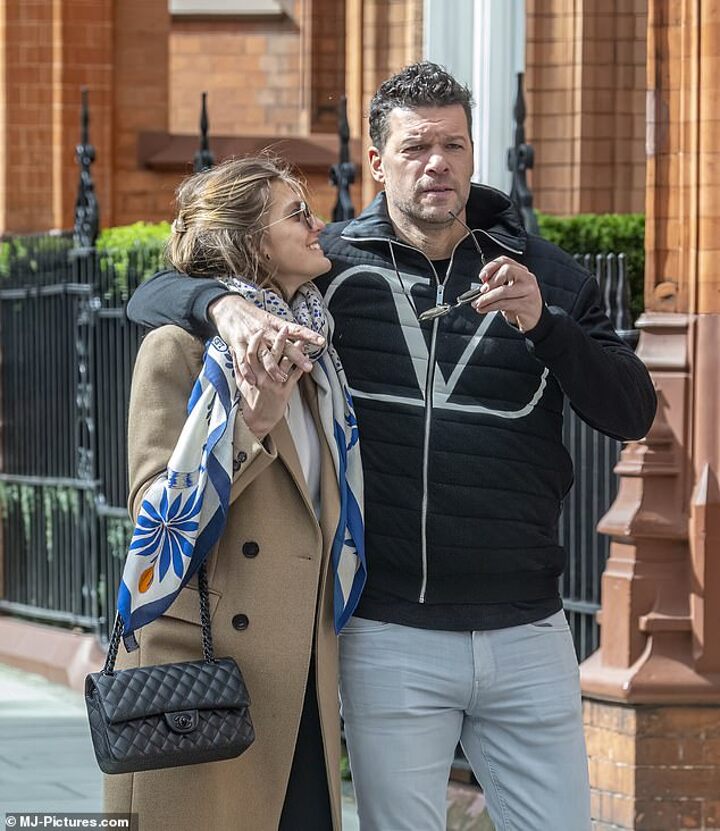 Ballack, 47, was pictured with his arm around girlfriend Sophia Schneiderhan as they strolled through Chelsea, London, the neighborhood the star used to call home during his playing days.