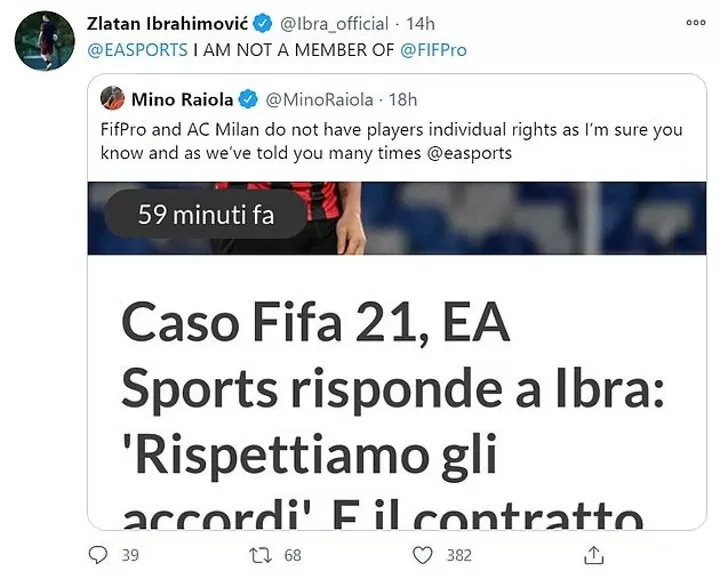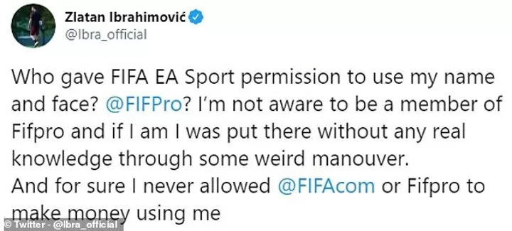 The AC Milan striker has threatened a huge row that could engulf the sport after he called out FIFPro and the FIFA video game series on Twitter on Monday night as he ordered an investigation into who permitted the game to use his name and face.