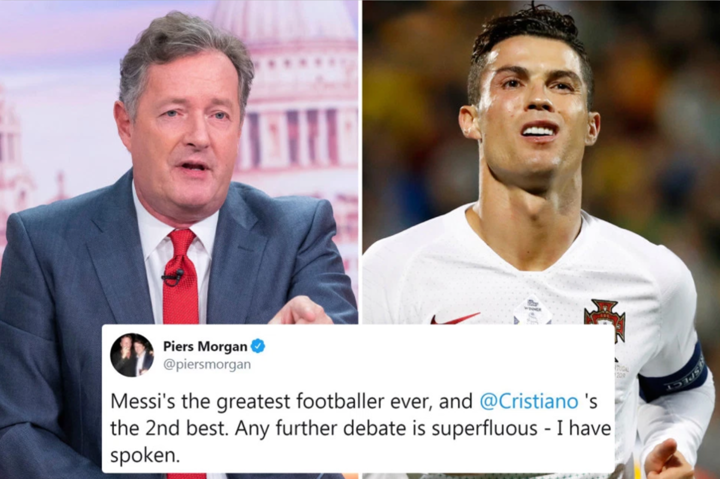 Before the interview Morgan recently took to Twitter to say that Juventus forward Ronaldo was 'indisputably' the greatest of all time.