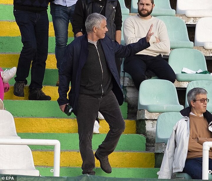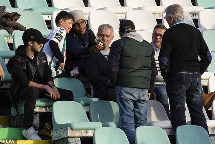 Mourinho was pictured on Saturday at Setubal's Bonfim Stadium with his son and former Man United scout Ricardo Formosinho, who also left the Premier League club last week along with its former manager after the Red Devils' 3-1 defeat to Liverpool.