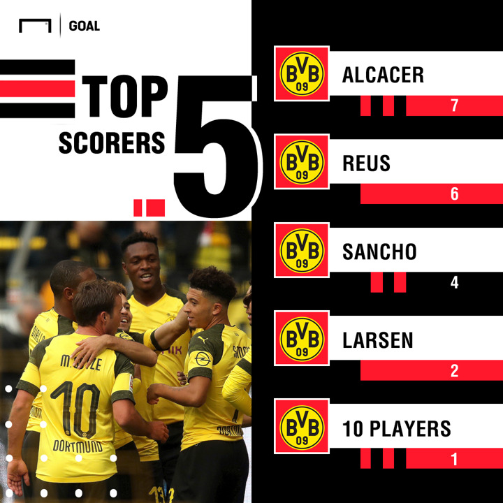 Only PSG have a better goals-per-game average in Europe's top five leagues this season, but with Neymar and Kylian Mbappe in their attack, goals should be a given against Ligue 1 opponents. Manchester City and Juventus have Sergio Aguero and Cristiano Ronaldo banging in the goals, but Dortmund's have come from everywhere.