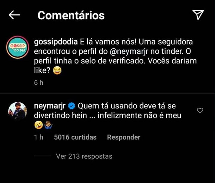 The fake profile for the dating app has somehow managed to get verified but Neymar insisted the account is not his in an Instagram post replying to Brazilian gossip page gossipdodia.