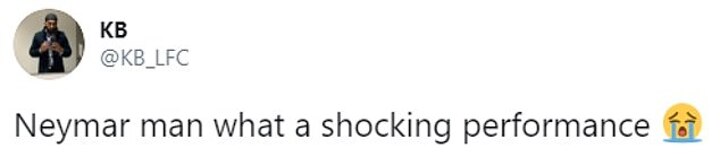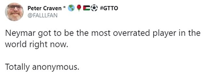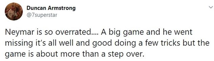 A fan tweeted: 'Neymar got to be the most overrated player in the world right now. Totally anonymous.'