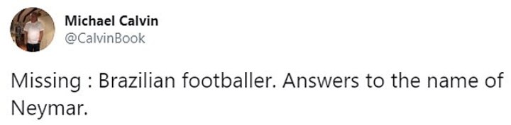 Another said: 'Missing : Brazilian footballer. Answers to the name of Neymar.'