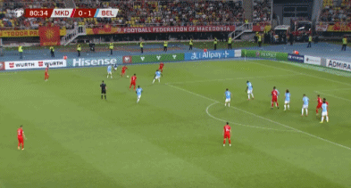 Belgium looked as though they were going to scrape away with a win before Darko Churlinov clipped an excellent cross in behind with just four minutes remaining, which Alioski met with a thundering left-footed volley to level the score.