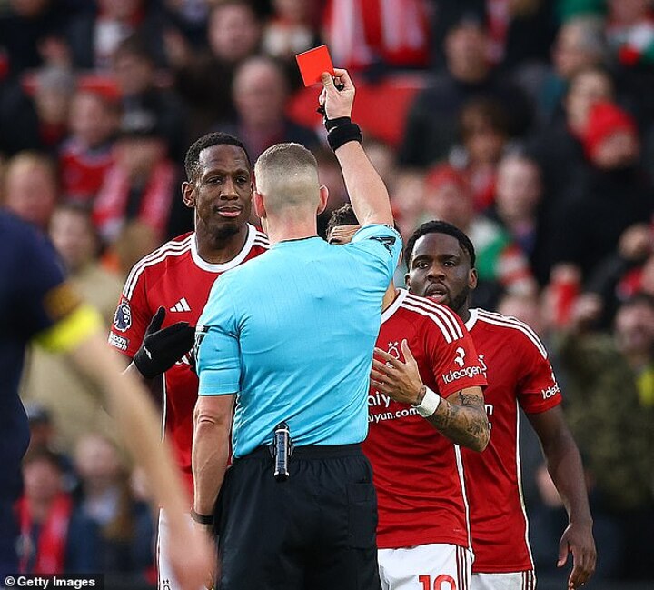 Dominic Solanke will not have the praise he deserves for his match-winning hat-trick, with the decisive goal coming in the fourth minute of added time. That is because Nuno Espirito Santo’s first game as Forest manager since replacing Steve Cooper saw his side forced to play for three-quarters of the match with 10 men due to one of the most ludicrous decisions of the season.