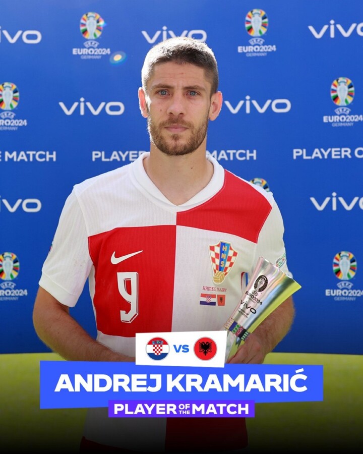 Andrej Kramarić is named Man of the Match for the game between Croatia and Albania