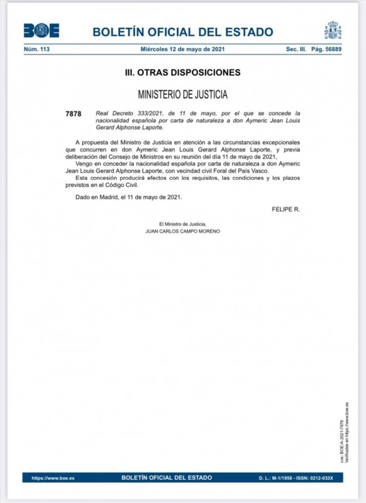 OFFICIAL: Aymeric Laporte changes his nationality from France to Spain