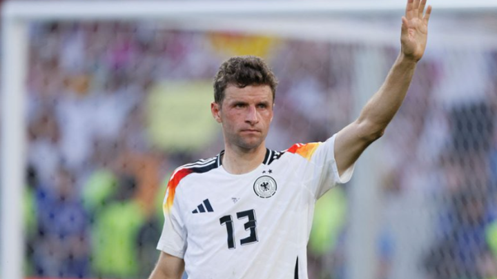 In October 2009, Müller was called up to the national team by then-coach Joachim Löw, and he made his debut in March 2010. Throughout his career with Germany, Müller played 131 matches, scoring 45 goals and providing 41 assists. He won the 2014 World Cup with the team. Müller's farewell match for the national team was the Euro 2024 quarter-final where Germany lost 1-2 to Spain.