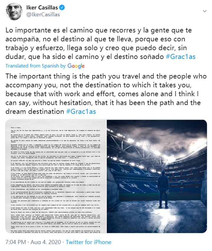 Last year, Casillas suffered a heart attack while training with his team Porto, and hasn't played any match since then. And the legendary goalkeeper confirmed his retirement from football on social media today.