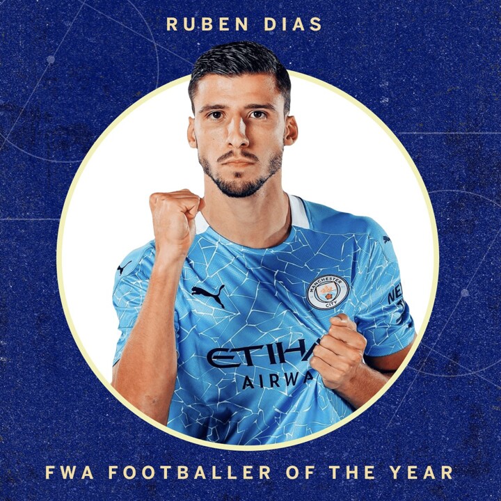 Dias received the most votes from FWA members and beat the likes of Manchester United's Bruno Fernandes, Tottenham striker Harry Kane and team-mate Kevin De Bruyne to the prestigious award.