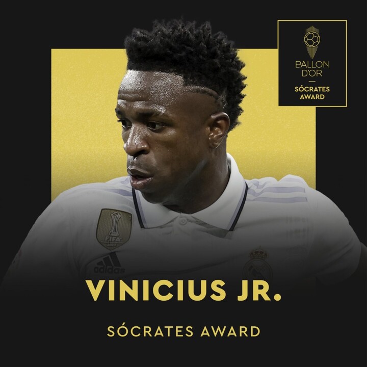 Vinicius Jr. wins the Socrates Award for his humanitarian work off the pitch.
