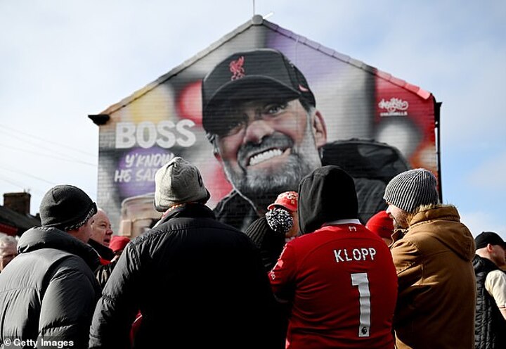 The billboard is painted red and Klopp, who has one more day left in the job he has graced for nine years, stares out from one end of it. At the other end, a sentence reads: ‘Jurgen reminded us of who we’ve always been.’