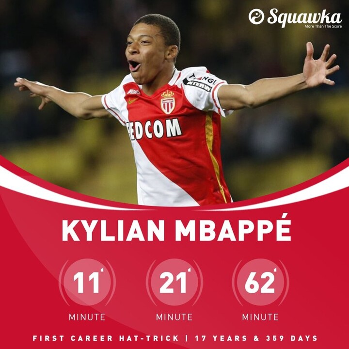 In 2016, Kylian Mbappe scored his first career hat-trick at the age of 17 years an 359 days old for Monaco in the Coupe de la Ligue. He became the first Monaco player to score a hat-trick in the competition since Sonny Anderson in 1997.