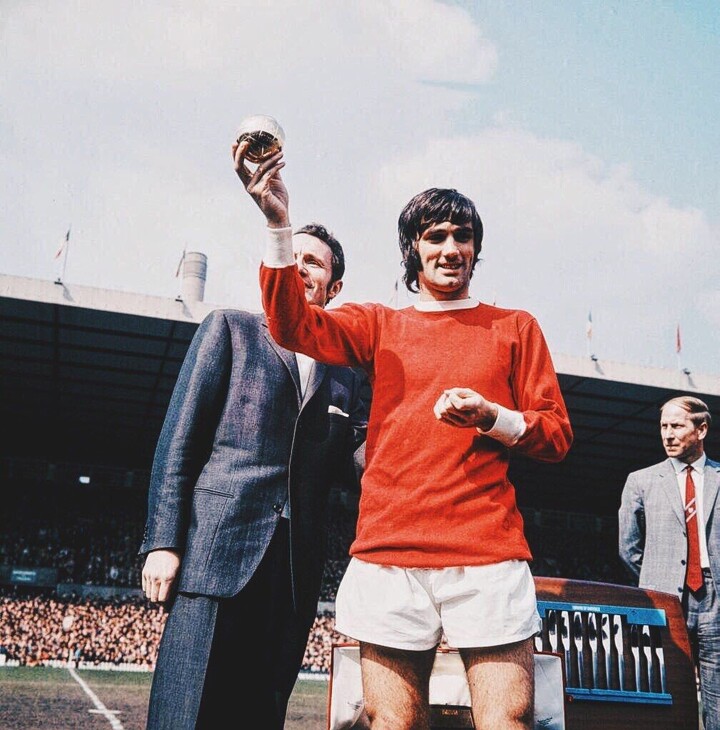 Manchester United's winger George Best wins award for best European football player ahead of team mate Bobby Charlton and Red Star Belgrade winger Dragan Džajić; Best was the first Northern Irish national to win the award. He was the third Manchester United player to win the trophy after Denis Law (1964) and Bobby Charlton (1966)