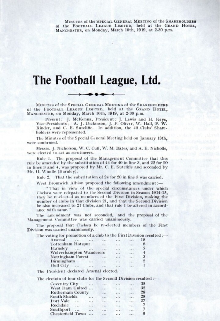 “And the winner is Arsenal!”…announced Football League President ’Honest’ John McKenna to the packed room at the Grand Hotel in Manchester in the late afternoon of 10 March 1919.