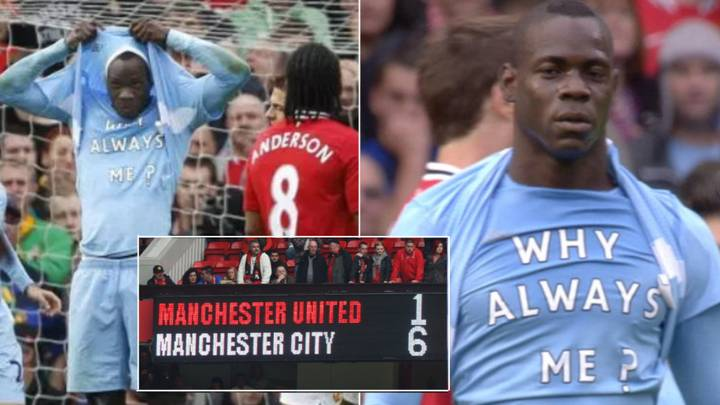 Back in 2011, Mario Balotelli stunned Old Trafford into silence when he opened the scoring in a 6-1 win over Manchester United, but his iconic celebration will ultimately down in memory as one of the greatest - "Why always me?"