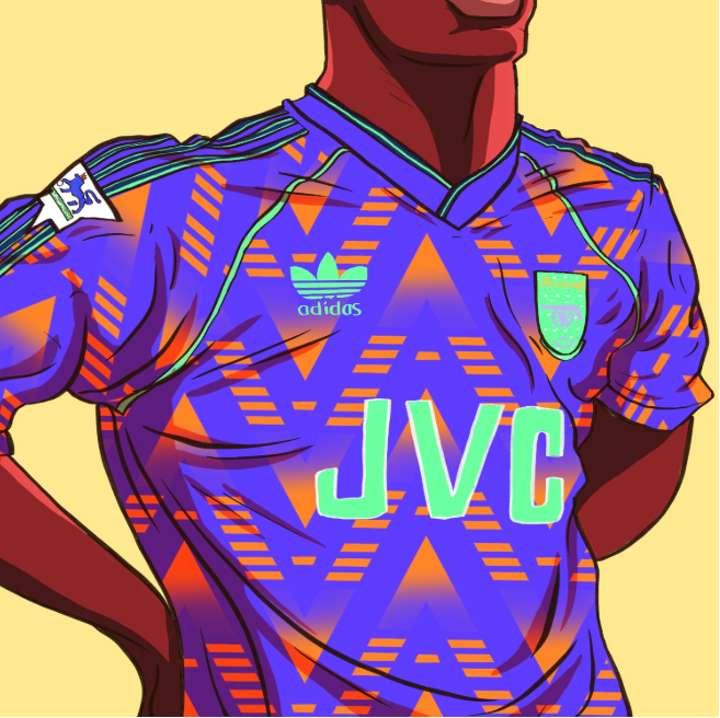 Dan Leydon first created an illustration of the original Adidas Arsenal Bruised Banana jersey from 1991-1993. He then experimented with different color combos and shared four eye-catching and bold versions of his Bruised Banana jersey.