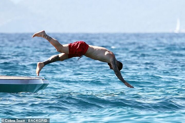 Lionel and the group were spotted diving into the water and going for a swim as they made the most of their sun-kissed trip.