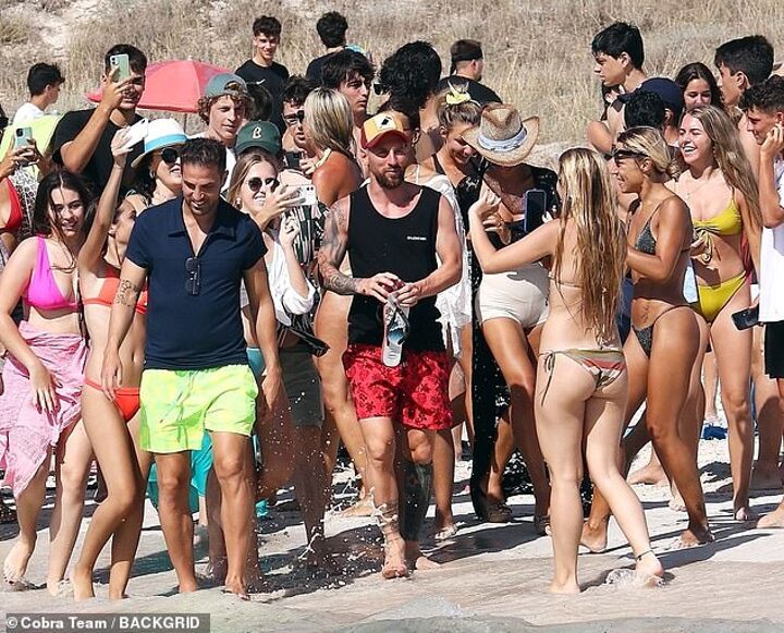 And Lionel Messi was a man in demand as he was mobbed by fans on the beach while on holiday in Formentera in Spain.