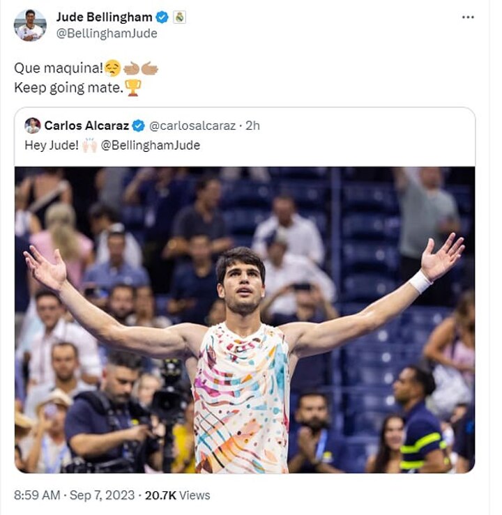 And Bellingham's antics after scoring have been one of the trends of Spain this season. The midfielder's classic pose sees him lean back with his head-high and chest-out, while his arms are also outstretched, with this celebration copied across sports including by Wimbledon champion Carlos Alcaraz.