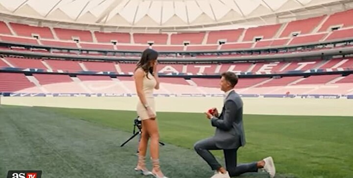 The star, who spent four years as arch rivals Real Madrid before joining Atletico, announced he was engaged to girlfriend Patricia with a video showing him getting down on one knee inside the club's Wanda Metropolitano stadium.