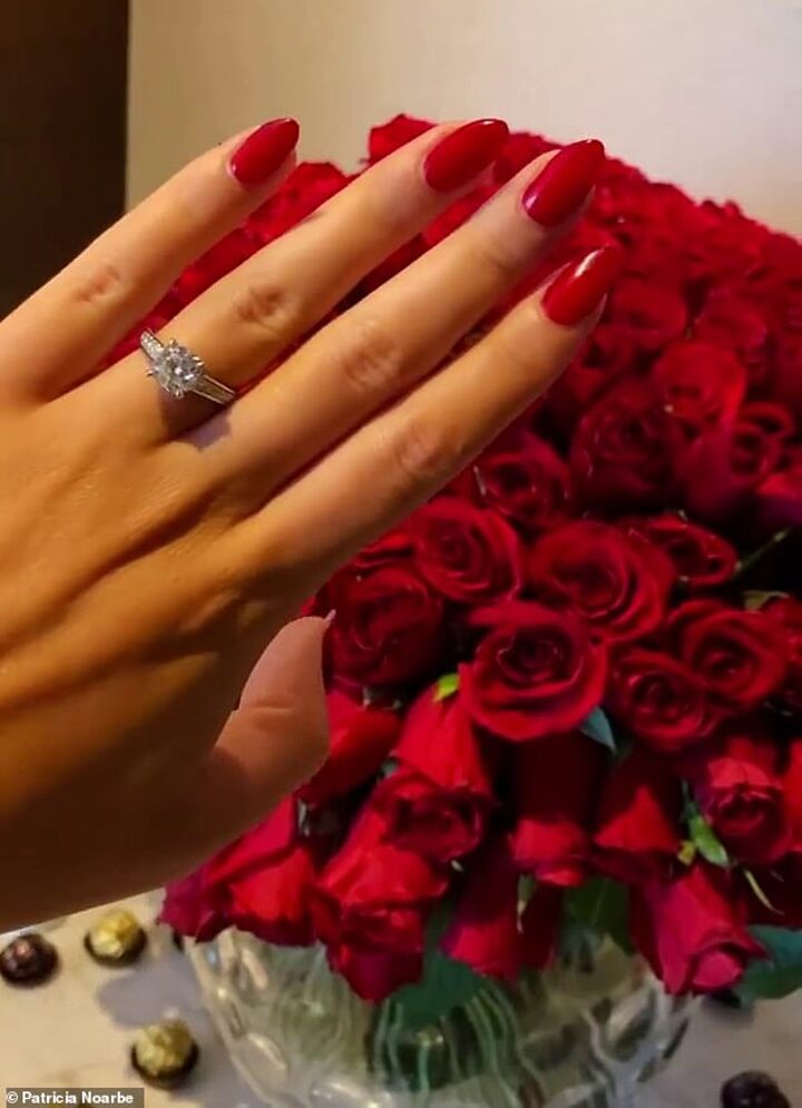 Marcos Llorente's fiancée Patricia Noarbe showed off her sparkling engagement ring after her beau's romantic football pitch proposal on Tuesday.