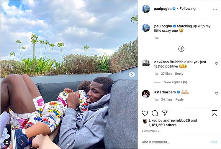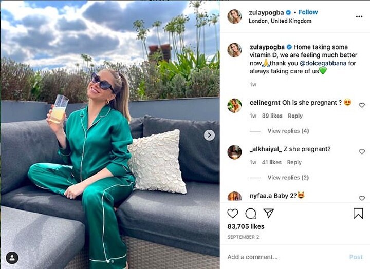 Both Pogba and his wife, Maria Zulay, were positive for the virus but she revealed that the pair are feeling better, as he wrote on Instagram last week: 'Home taking some vitamin D, we are feeling much better now.'