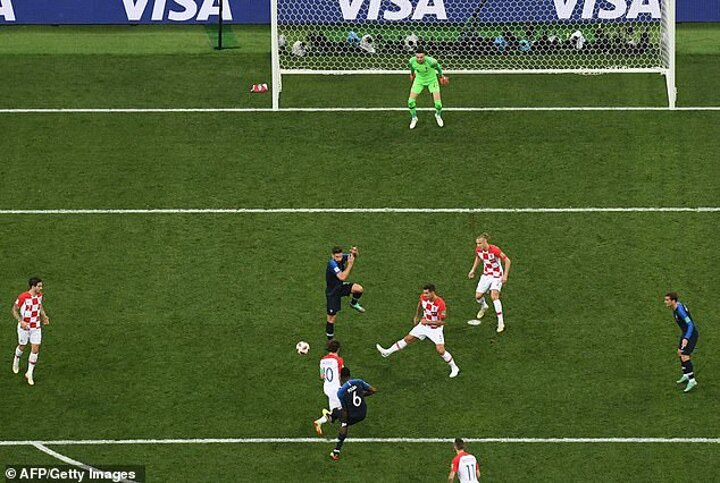 Pogba did not sit and admire his pass. He ran to the edge of the area and when Mbappe and Griezmann worked it back to him, he saw one shot blocked by a defender and then curled the rebound with his left foot superbly into the corner of the Croatia goal. As he ran towards the corner flag, he was buried by an avalanche of his teammates.