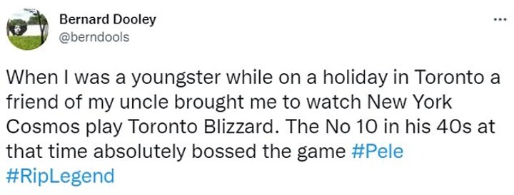 Another tribute read: 'When I was a youngster while on a holiday in Toronto a friend of my uncle brought me to watch New York Cosmos play Toronto Blizzard. The No 10 in his 40s at that time absolutely bossed the game.'
