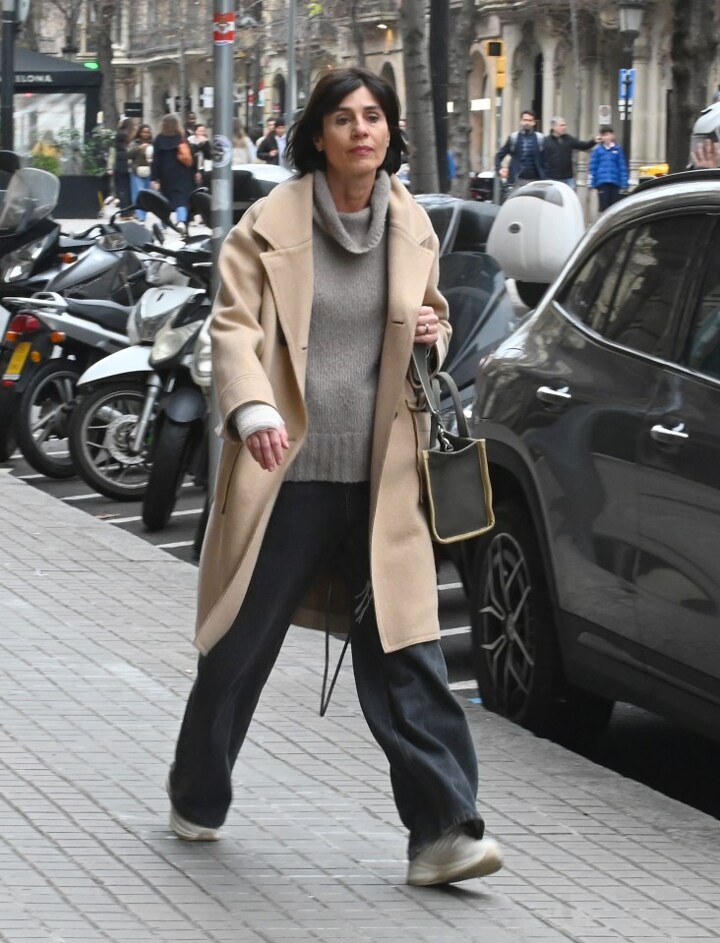 She smiled as she was approached by a Spanish reporter in the city centre showing off a stylish look of white trainers and loose-fitting grey trousers with a designer handbag slung over the left shoulder of her cream-coloured coat.