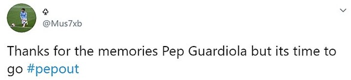 Another said: 'Thanks for the memories Pep Guardiola but its time to go #pepout'.