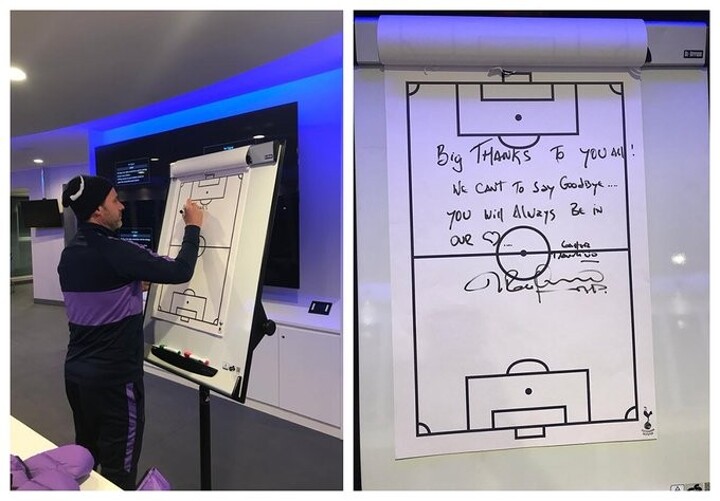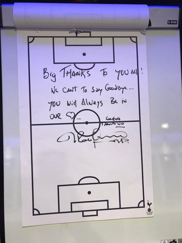 Mauricio Pochettino has left a touching message on Tottenham’s tactics board after being sacked by the club on Tuesday.