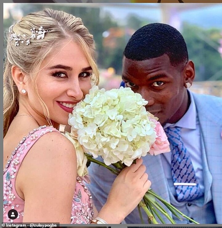Manchester United midfielder Paul Pogba posed alongside girlfriend Maria Salaues on holiday on Wednesday.