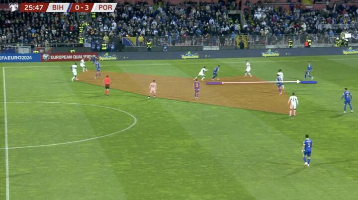By pressing aggressively, Portugal effectively look to force the opposition down one half of the pitch.