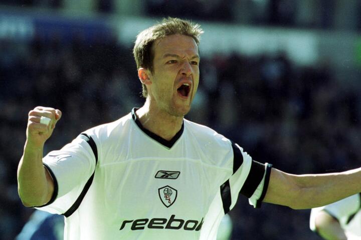 Teddy Sheringham, with the hair, after scoring against Bolton in August 2003 (Photo: Jamie McDonald via Getty Images)