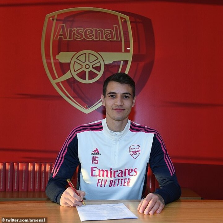 Following his signing, sporting director Edu said: 'We're delighted to have completed the signing of Jakub Kiwior. He's a young talent who we've been monitoring for a while now.