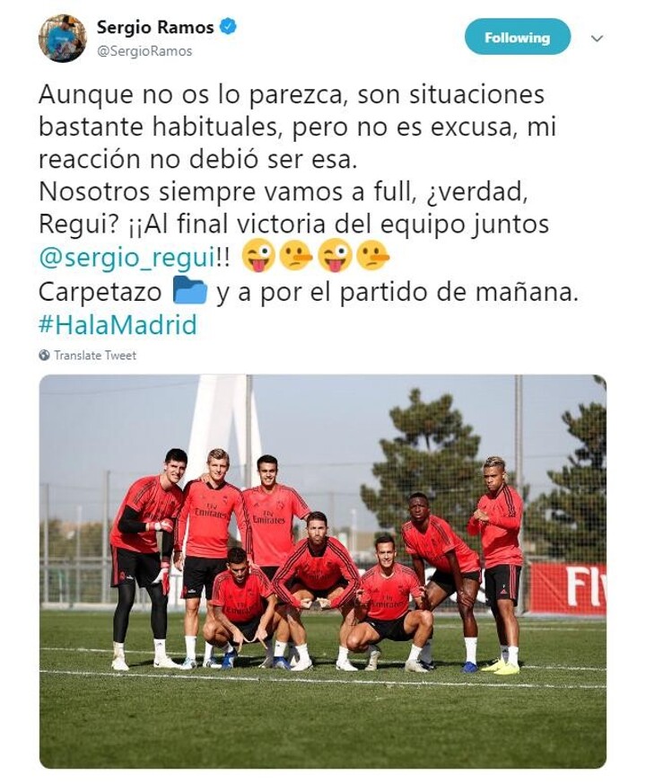 Ramos writes on Twitter: "Although it may not seem like it, they are quite common situations, but it is not an excuse, my reaction should not have been that."